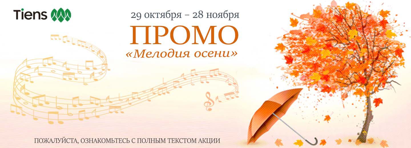 Новичку, вступившему в период действия промоушена и сделавшему 300 РV объема по развитию и по розничным продажам, предоставляется право купить 1 набор «Мелодия осени -2» под кодом KTKZ00199 в который входит 1 шт Чай «Тяньши» «Тьен Фен Ча» (18PV) , 1шт Капсулы «Вэйкан» «Тяньши» (31PV) за 1 тенге, PV/ВV 0 (первоначальная величина 49 PV);