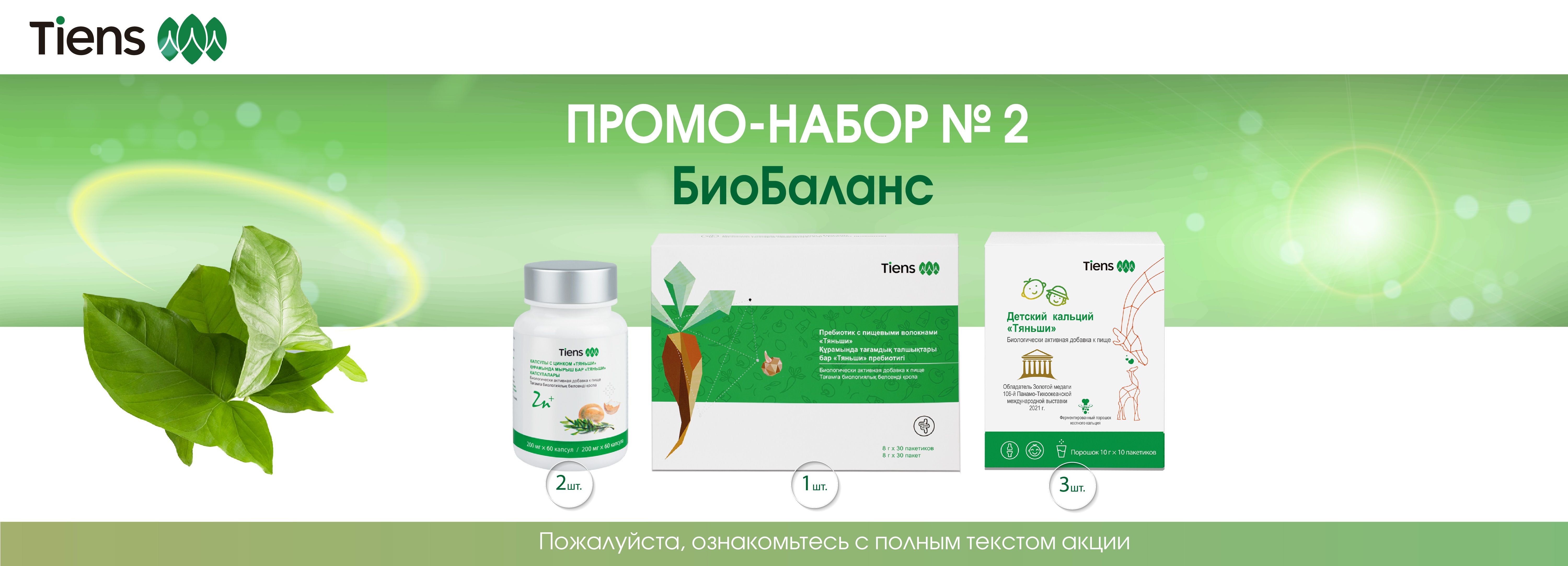 Любой партнёр в период действия акции может купить 1 набор «БиоБаланс» под кодом KTKZ00328, в который входит 2 шт. Капсулы с цинком «Тяньши», 3 шт Детский кальций «Тяньши, 1 шт. Пребиотик с пищевыми волокнами «Тяньши» за 54172 тенге (107PV/100BV).